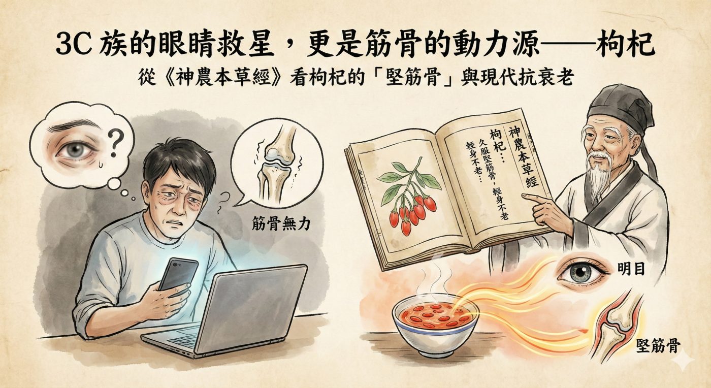 從《神農本草經》看枸杞的「堅筋骨」與現代抗衰老 【保溫瓶裡的最後一道防線】 「人到中年不得已,保溫杯裡泡枸杞。 […]