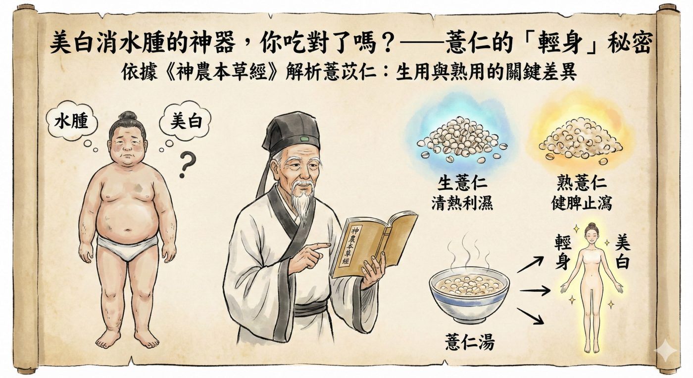 依據《神農本草經》解析薏苡仁:生用與熟用的關鍵差異 【喝了薏仁水卻更虛寒?】 「美白」、「消水腫」是薏仁(薏苡 […]